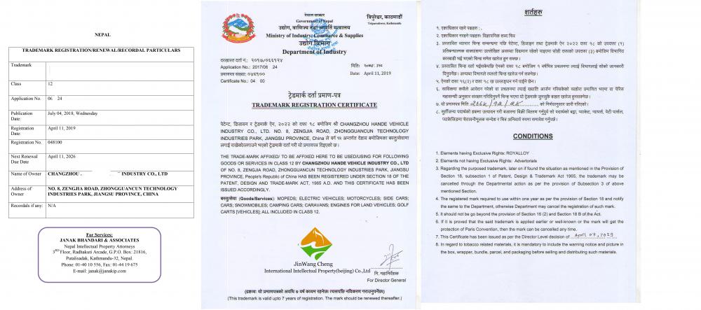 【尼泊尔】商标申请成功样本