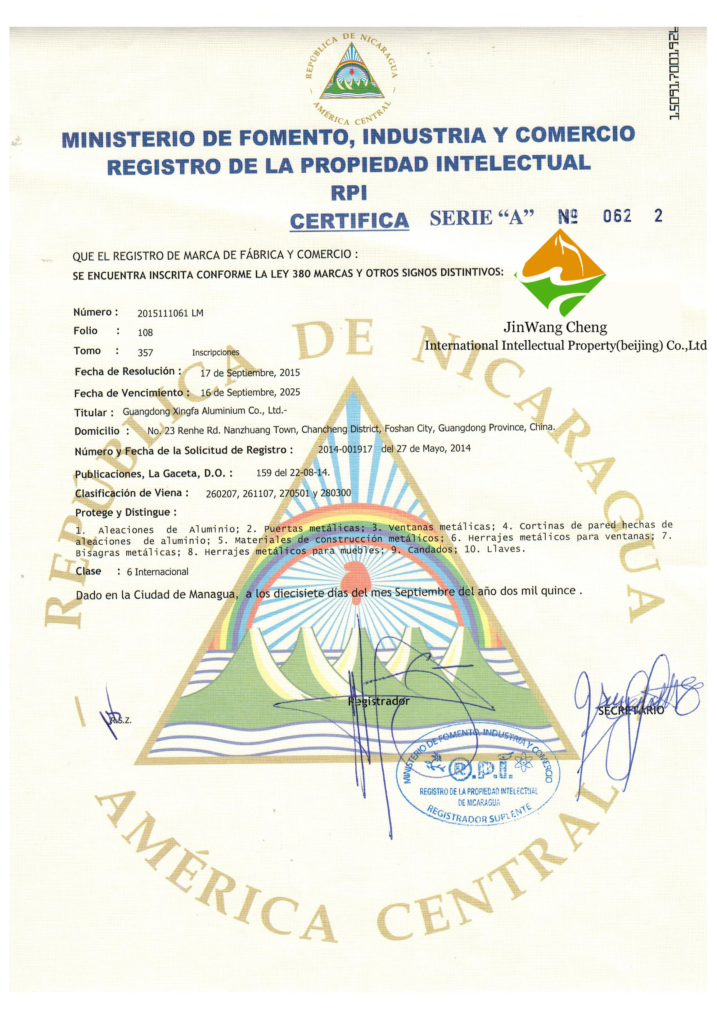 【尼加拉瓜】商标申请成功样本